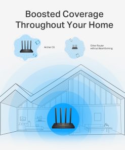 - Boosted Coverage – Four external antennas equipped with Beamforming technology extend and concentrate the Wi-Fi signals.